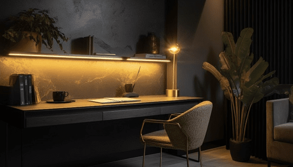 Essa técnica envolve o uso de fitas de LED ou perfis de iluminação nos contornos ou na parte de trás dos móveis.