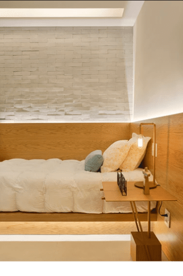 Aposte em nichos e prateleiras nas paredes, criando um ambiente mais moderno e aconchegante.